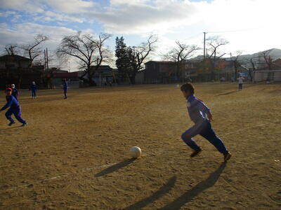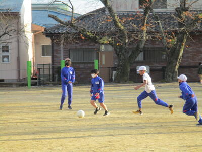 校庭では、球技クラブがサッカーを楽しんでいました。学年が違えば、当然、技術に差も生まれます。そこで、互いが楽しめるようにルールを工夫したり、チームの編成を考えたりすることも大切な学習になります。