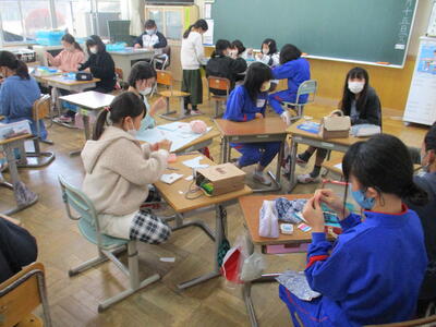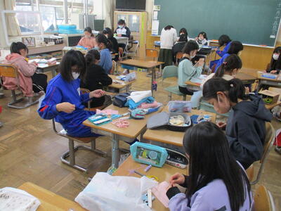 調理・手芸クラブは、ポーチづくりのようです。作業は一人一人でも、互いに教え合ったり、話し合ったりしながらつくるのもクラブ活動の楽しいところ。