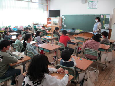 子どもたちはにこにこ笑顔で話しかけます。新旧二人の担任の先生と子どもたちの会話は温かく、その光景はとても微笑ましかったです。