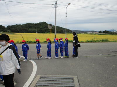 1年生は、「止まる、見る、待つ」をしっかり守って、道路を歩くことができました。