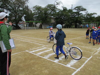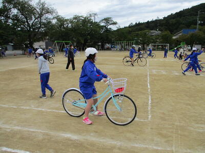 5年生は、ふらつかないで乗れる子が多く安心しました。体の成長と共に自転車のスピードも出るので、道路を横断する際は、必ず停止することをしっかり指導しました。