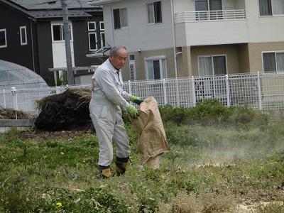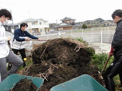 前歴代PTA会長・副会長会会長の日下部角栄様に協力いただき、教職員も一緒に一生懸命畑を耕しました。