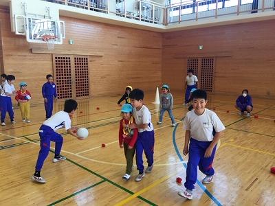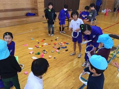 じゃんけん列車やしっぽとり、ドンじゃんけん、フルーツバスケット、転がしドッジボール、輪投げの6つのコーナーをそれぞれが責任を持って、運営していました。