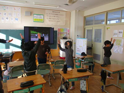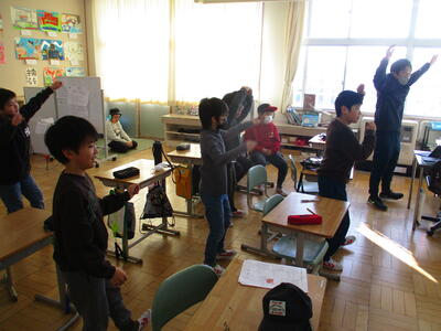 先生も一緒になって踊る姿に、学級集団の一体感を感じます。