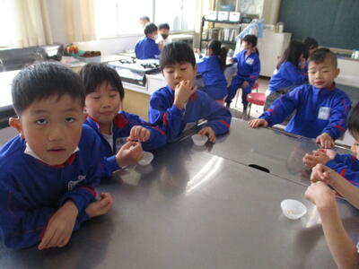 12月19日 今日は2年生の収穫祭。先日、収穫したトウモロコシをみんなでポップコーンして食べました。