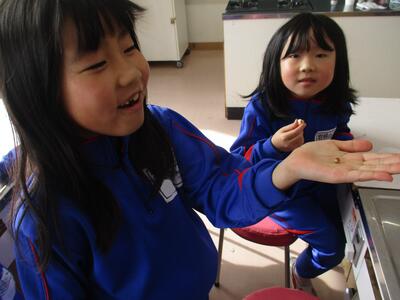 生活科では、このような気付きも大切です。破裂しない種もあることを知ったり、この種をもう一度火にかけたらどうなるか、そんな疑問をもったりすることも生活科ならではの学びです。