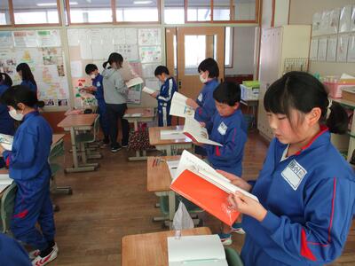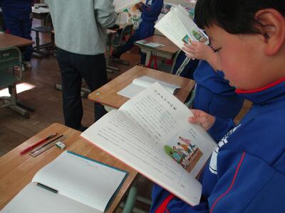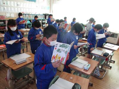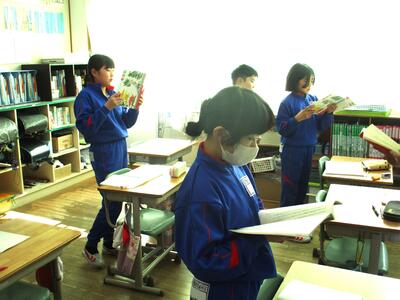 12月20日 4年生が国語科の学習中。全員立って、教科書を持ち、声に出して読んでいました。いわゆる音読です。文章の内容をよりよく理解するためには、音読の力は欠かせません。
