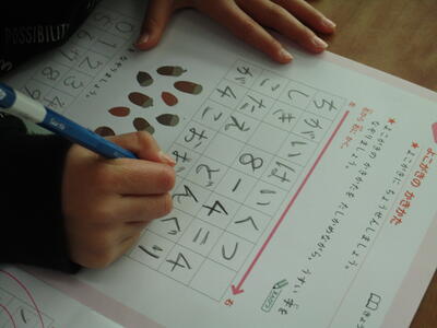 なぞり書きも大切な練習です。はみ出さないように、集中してなぞっていました。