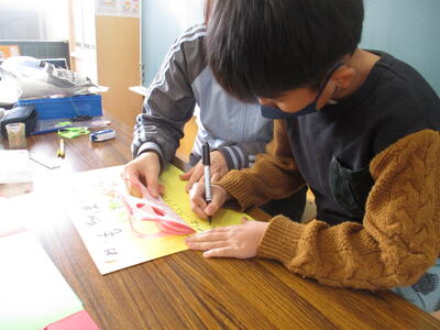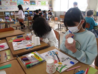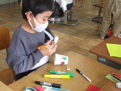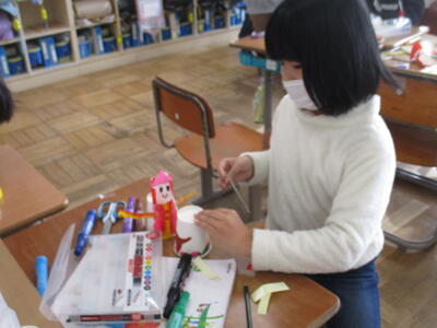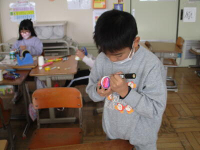 12月5日 心を込めて作っています。今、2年生は、生活科「おもちゃまつりをしよう」の準備中。このおもちゃまつりには、1年生を招待します。たくさん楽しんでほしいので、準備にも力が入ります。