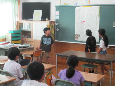 9月13日 国語科で新聞づくりをがんばっていた4年生。取材から始まり、新聞の特徴である、見出し、段組、図や写真などを取り入れながら、新聞を作り上げました。今日は、その発表をがんばっていました。