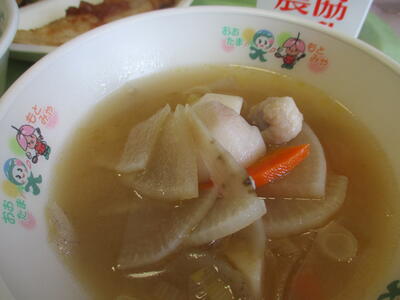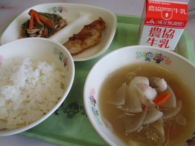 9月13日 今日の給食のメニューは「たらの南蛮ソースがけ」「インゲンの炒め物」「みそけんちん汁」でした。