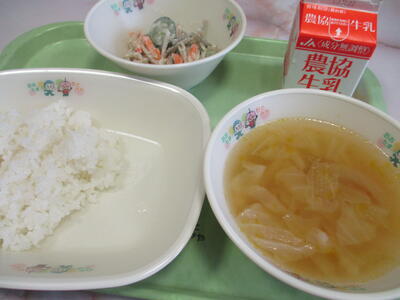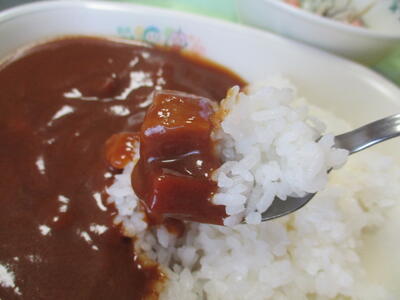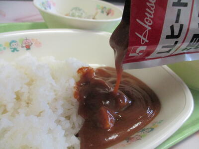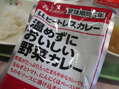 9月4日 今日の給食のメニューは「ヒートレスカレー」「ごぼうサラダ」「コンソメスープ」でした。9月1日の防災の日にちなんだメニューです。