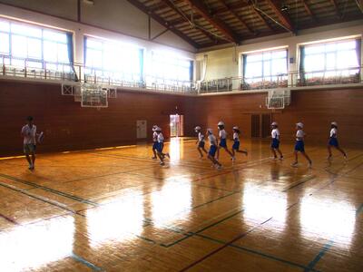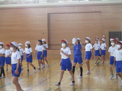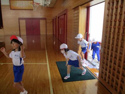 今回は校庭がぬかるんでいたため、体育館に避難しました。(万が一の時は、たとえ校庭の状況が悪くても校庭に避難します)