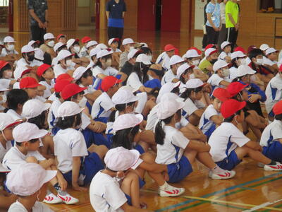 子どもたちは、みんな真剣に話を聞いていました。これからも、めりはりのある指導を大切にし、子どもたちの命をしっかりと守っていきます。