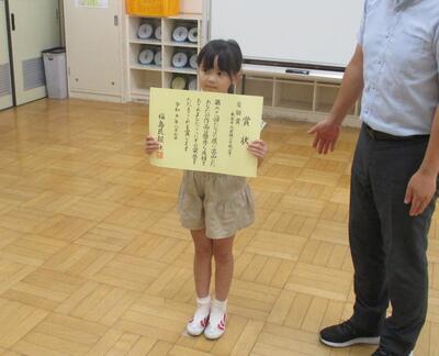はっきりと返事をして、姿勢よく賞状を受け取る姿も立派でした。