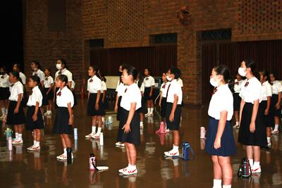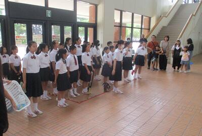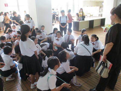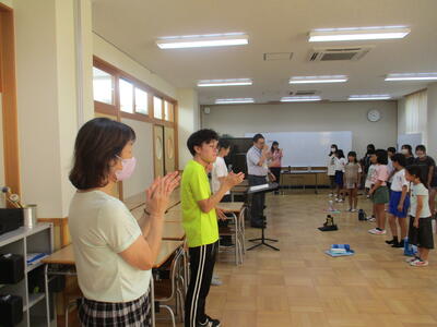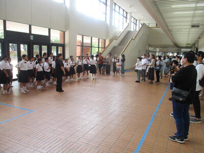 そして、岩根小特設合唱部お馴染みの大会前の合唱披露。多くの先生方に聞いていただきました。みんなが応援しています。