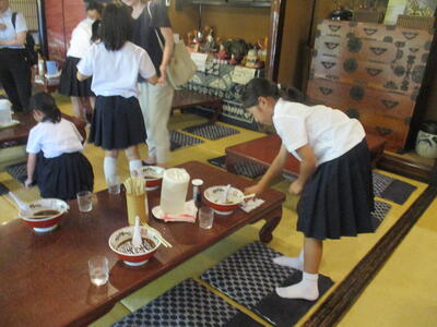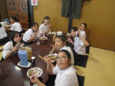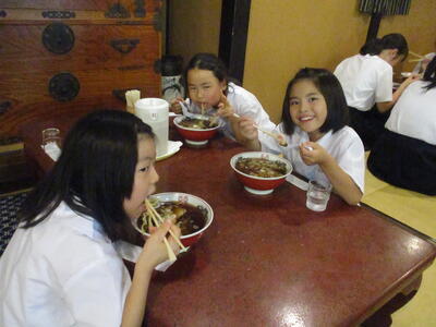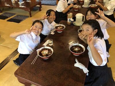 ラーメンが運ばれてきました。「いただきます」と声の揃った美しいあいさつで食がスタート。