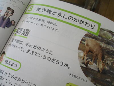 9月4日 6年生が、理科の学習で、生き物は水とどのように関わって生きているかを調べていました。
