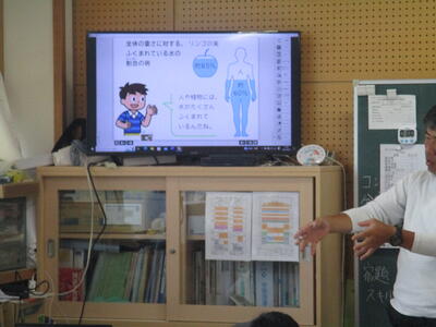 先生は、画像を提示しながら、人間の体内には水分がどれぐらい含まれているかを説明していました。