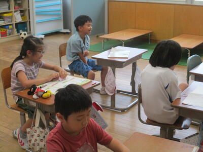登場人物の気持ちを考える春蘭の子どもたち。考え、伝えることも大切な学びです。