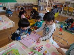 預かり保育を利用している子どもたちは、幼稚園で楽しく遊んでいます。