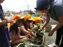 何を育てるか話し合い、夏野菜の苗植えをしました。