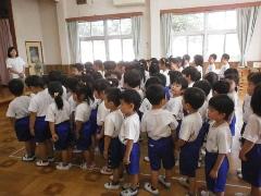子ども達は園長先生の話をしっかり聞き、夏休みの約束を確認することができました。