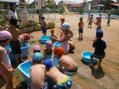 最近は、水遊びも始まり水鉄砲やペットボトルを使い、元気に遊んでいます。