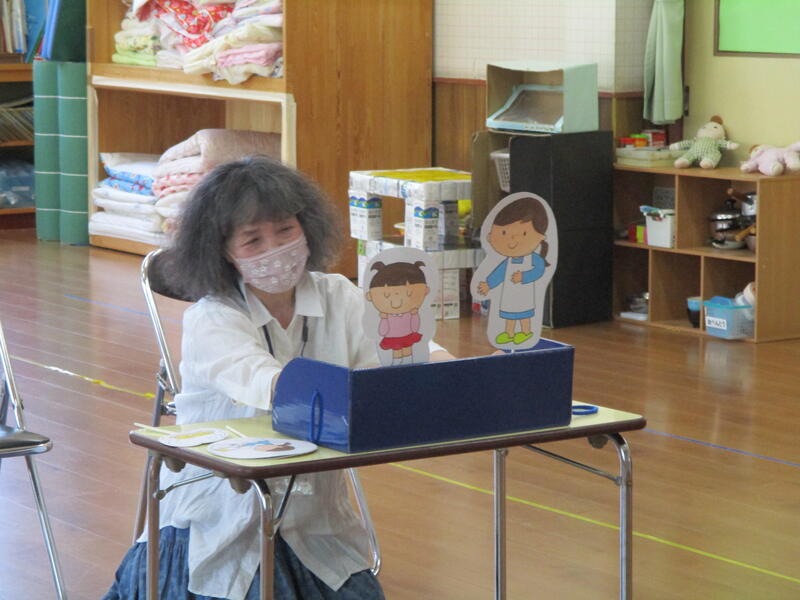 年長組はお話会が行われました。様々なお話に真剣に耳を傾けており、心が豊かになる時間でした。