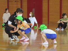 おうちの方とのふれあいを楽しみながらいろいろな動きに挑戦しました。