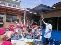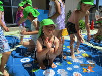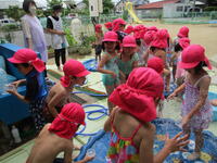 天気の良い日には、水遊びを楽しみました。子どもたちもずっと楽しみにしていて、友達と水の冷たさや気持ちよさを楽しんで遊んでいます。