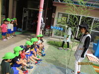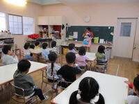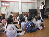 年長さんは講師の方の話やビデオで、年少さんはエプロンシアターで交通安全の決まりや約束について知ることができました。