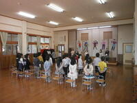 年長さんは歓迎の言葉やプレゼントを用意して、岩根幼稚園の新しいお友達を歓迎しました。