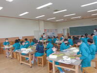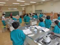 5年1組は家庭科「クッキングはじめの一歩」の学習です。調理することのよさについて考えあいました。