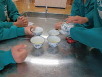 5年1組は家庭科。おいしいお茶の入れ方に挑戦です。