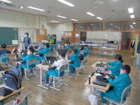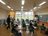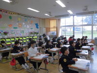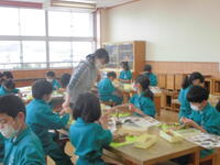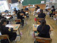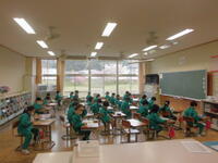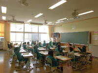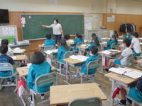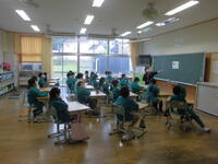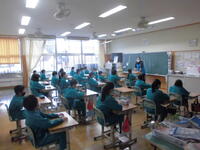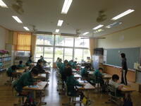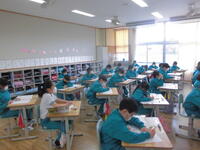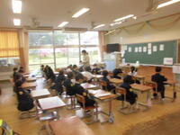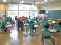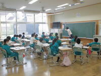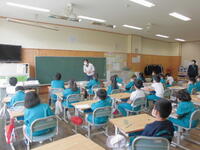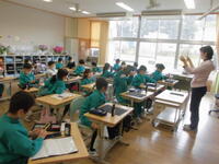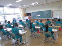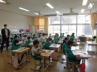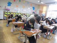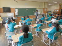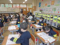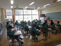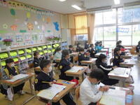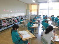 1年生は国語科。ひらがなの学習です。姿勢、鉛筆の持ち方、書き順などを学習しています。今日から教室の前の方からも写真を撮っています。
