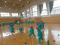 5年生は体育科。運動身体づくりプログラムに取り組んでいました。