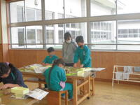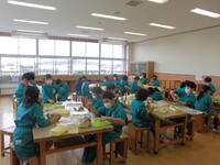 4年2組は図画工作科。粘土の特性を生かして 「つけて のばして 生まれる形」を楽しみます。