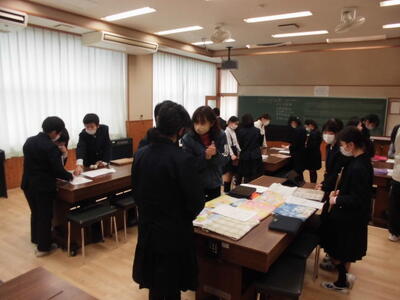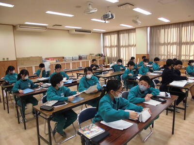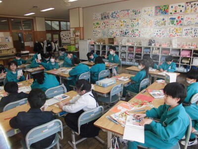 6年2組は国語科。おすすめの本を紹介するリーフレットを作ります。