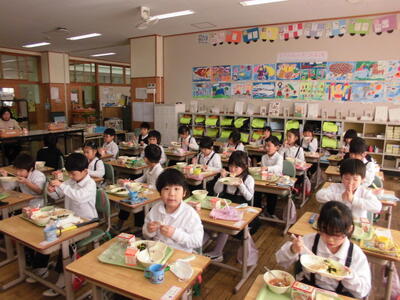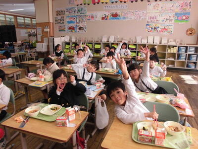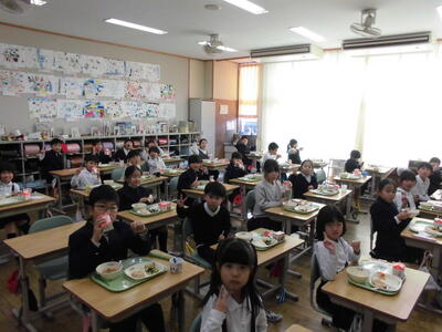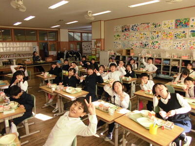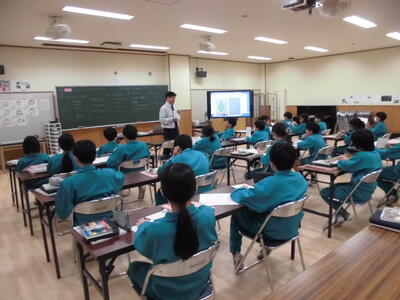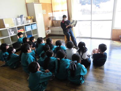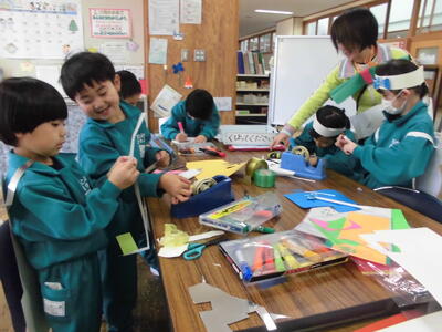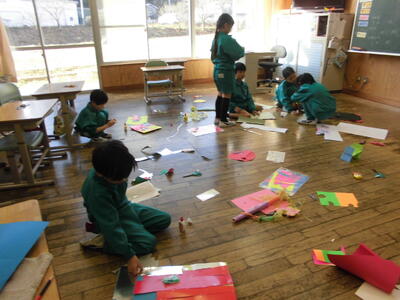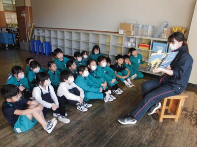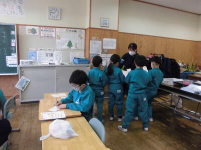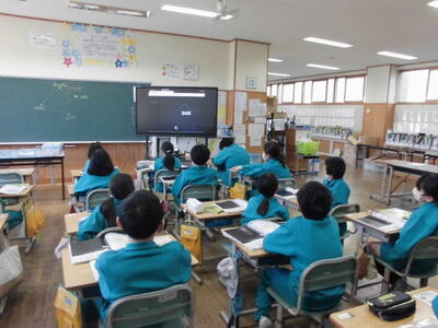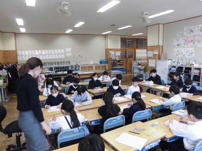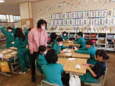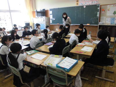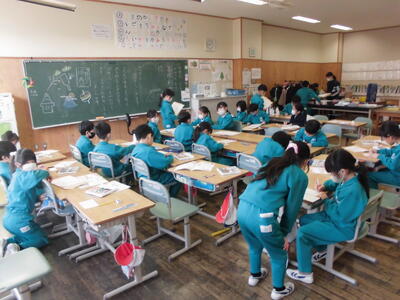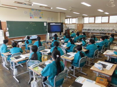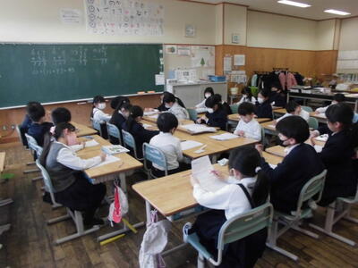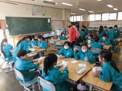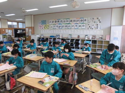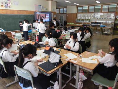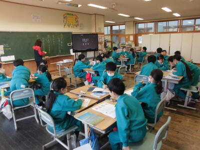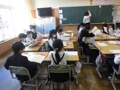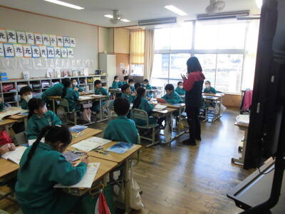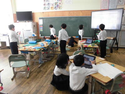 3年1組は国語科。四枚の絵を使って創作したお話を紹介しました。