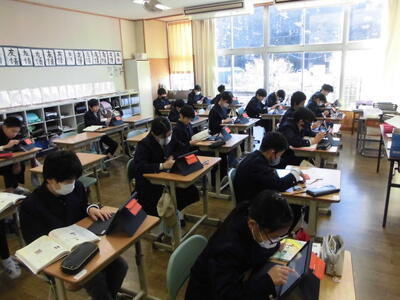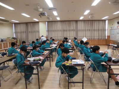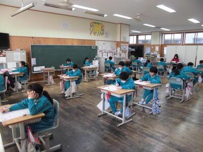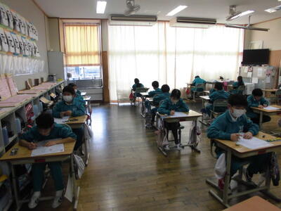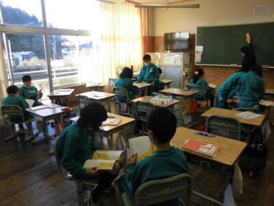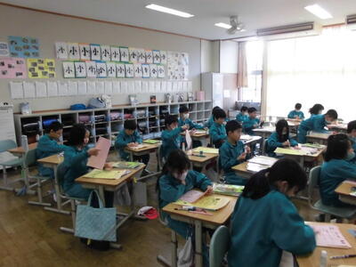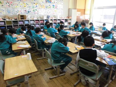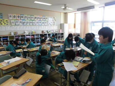 2年1組は国語科。完成したオリジナルの物語を読み合います。