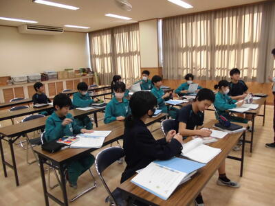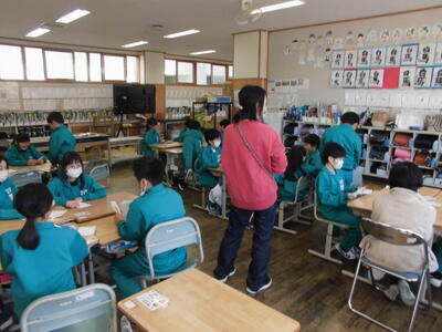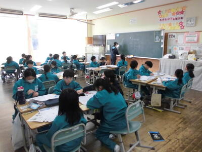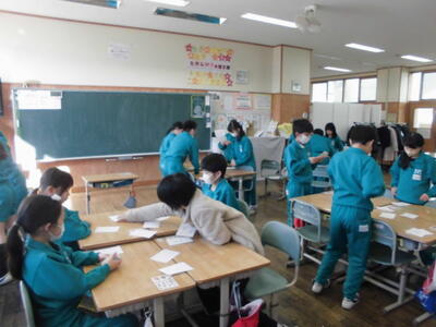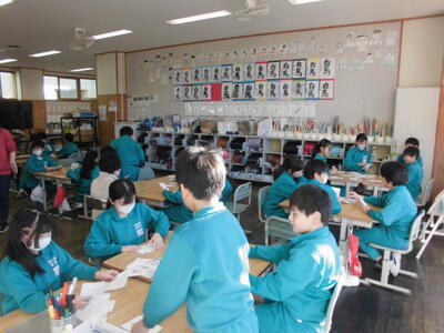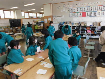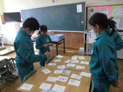 4年生は国語科の合同授業です。作成したカルタを使って楽しく学習しました。