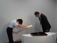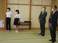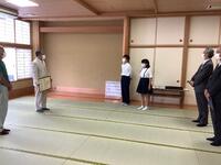 本日の昼休みに、和室にて畳寄与式が行われました。本校の和室にあった畳を回収し、新しい畳を搬入・設置までして下さいました。本当にありがとうございます。