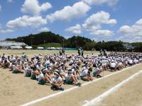 最後には生徒指導の先生から、夏休みの過ごし方で気を付けてほしい約束をしました。どんな約束かは是非お子さんから聞いてみてください。近年、夏休みの事故や怪我は多く発生しているので、ご家庭でも指導をお願いします。