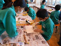 本日、書き初めボランティアの方においでいただいての書き初め指導がありました。3年生は初めて毛筆での書き初めに取り組むということで、講師の先生から筆の持ち方や筆運び、姿勢など基本的なことについて丁寧に教えてもらいました。