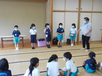 本日、2回目の運動会全体練習がありました。始めに、気をつけや休め、返礼の仕方などの礼法を確認し、開会式やラジオ体操、閉会式の練習を行いました。1回目のときと比べると、ラジオ体操の動きや返礼、話を聞くときの姿勢など確実に良くなってきている部分が増えており、さすがまゆみっ子と感心しました。
