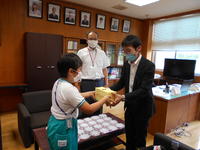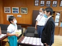 本日は、昨日までの募金活動で集まった義援金の贈呈式が校長室で行われました。企画委員会の代表児童2名の児童が参加しました。少し緊張している様子がありましたが、無事に渡すことができました。インタビューにもしっかり答えており、とても立派でした!