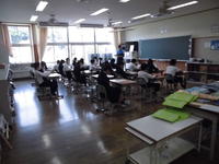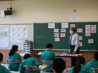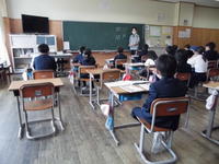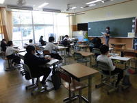 校内では、手洗い・手指消毒の徹底、教室の窓を開け換気をしながらの、机の間隔を離す、体育や給食以外はマスク着用の徹底といった対策をとりました。特に、体育や給食を食べる時はマスクを外しますが、その際にマスクをしまう「ポリ袋」を一人一枚渡しました。これは、マスクを着脱する時に無くさないための方法です。