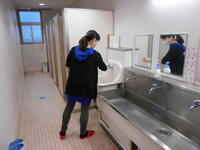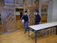 この消毒作業は、子どもたちが安全に学校生活を送るためにとても大切なものですので、学校再開後も継続して実施してまいります。もし、保護者の方々でこの活動に協力したいという方がいらっしゃいましたら、学校までご連絡くださいますようお願いします。(教頭)