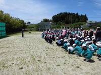 「避難訓練はなぜ必要なのか?」それぞれのクラスの中で話を聞き、子ども達は緊張感をもって訓練に臨みました。今回は、地震が起きて、火事が発生した想定での訓練です。ベルが鳴るとすぐに机の下へ隠れ、避難指示が出てからは静かに避難することができました。今回の訓練で、それぞれの学年の避難経路も覚える事ができました。
